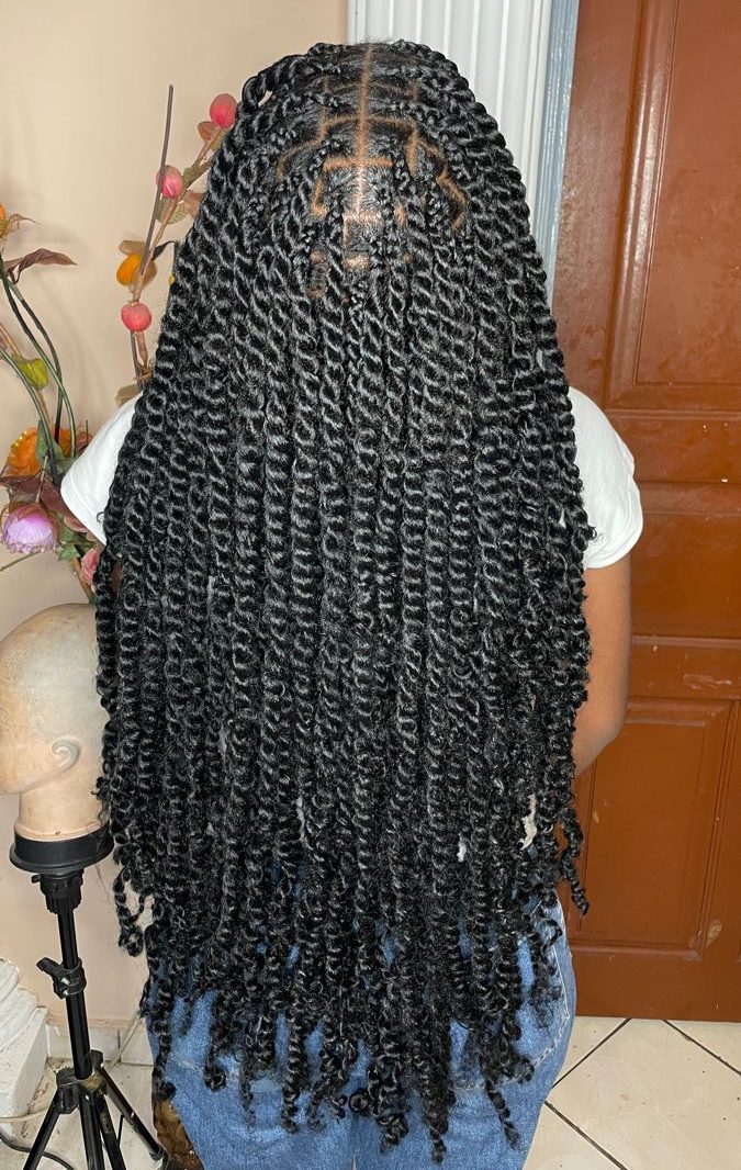A popular protective hairstyle where individual sections of hair are divided into square-shaped parts, which are then braided down.